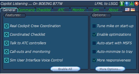 If running a non-English edition of Windows or the flight simulator, you will see a couple of flags that allow you to switch the user interface language between English and any of the following languages, German, Spanish, French, Italian and Portuguese.
